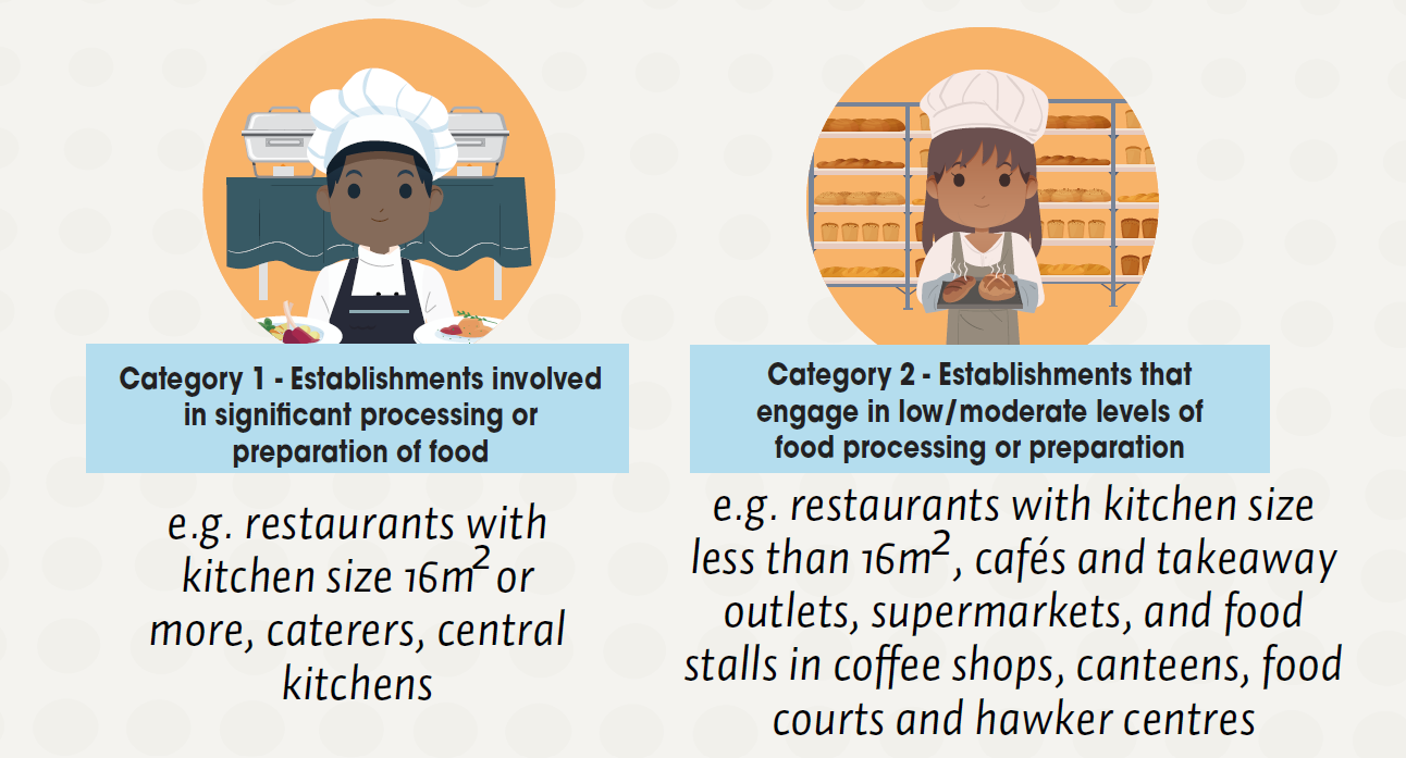 The framework applies to approximately 45,000 SFA-licensed food establishments that process or prepare food for sale to the public. These food establishments are grouped into two categories: