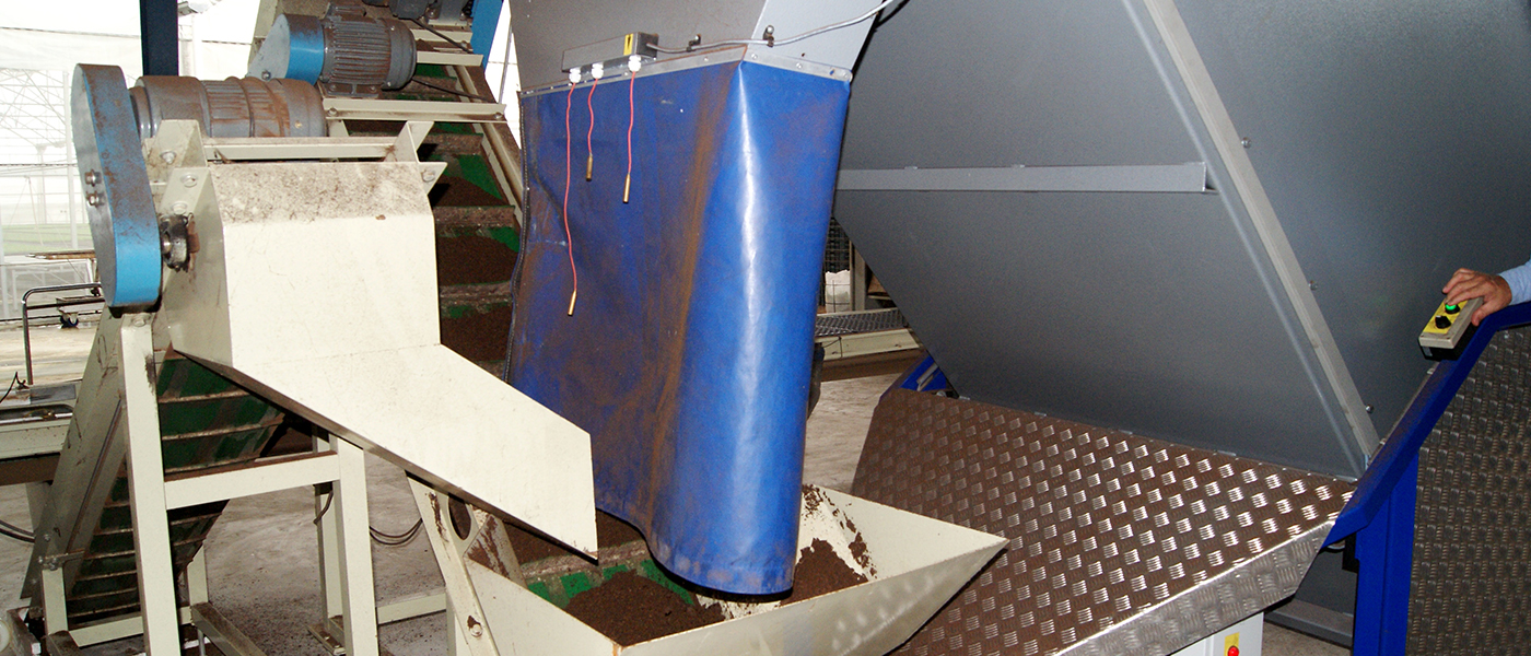 Automation is employed in the stages of seeding and packaging. Photo shows a mechanised mixer cum compacter requires only 1 instead of 3 workers to loosen peat moss daily.