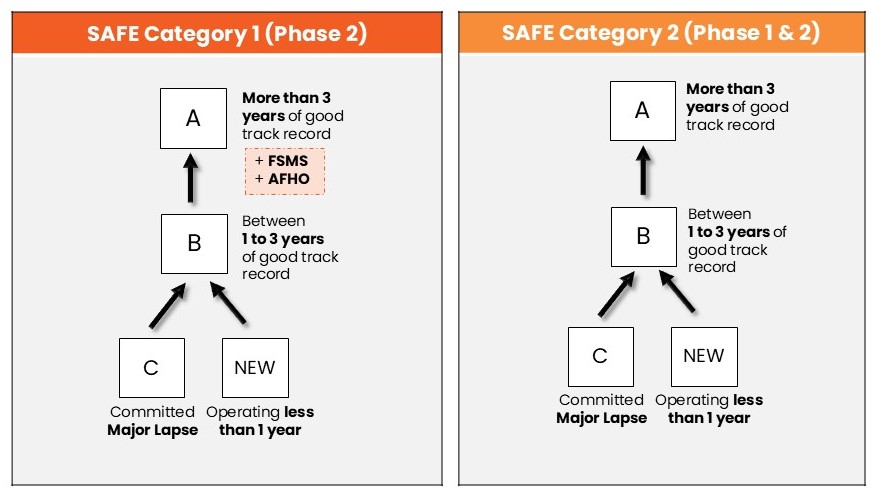 The SAFE framework applies to SFA-licensed food establishments that process or prepare food for sale to the public. These food establishments are grouped into two categories.